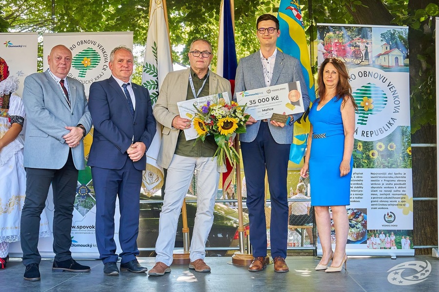 Naše obec od hodnotící komise získala rovnou dvě ocenění. Fialovou stuhu za inovativní obec. To znamená, že oceněná obec využívá nové technologické nástroje a inovativní přístupy - zvláště ty založené na digitalizaci - pro dosažení vyšší kvality života a veřejných služeb. S oceněním je spojena odměna formou dotace od Ministerstva pro místní rozvoj 800 000 Kč. Dále naše hliněné kolumbárium na hřbitově získalo Zlatou cihlu jako venkovská novostavba roku v Olomouckém kraji. S tímto oceněním se pojí dar 35 000 Kč od Olomouckého kraje. Ceny ve vítězné obci Vrbátky převzal za Mořice starosta Tomáš Pavelka, emeritní starosta a člen komise rozvoje obce Jaroslav Knap a vedoucí týmů údržby zeleně Roman Vodák.